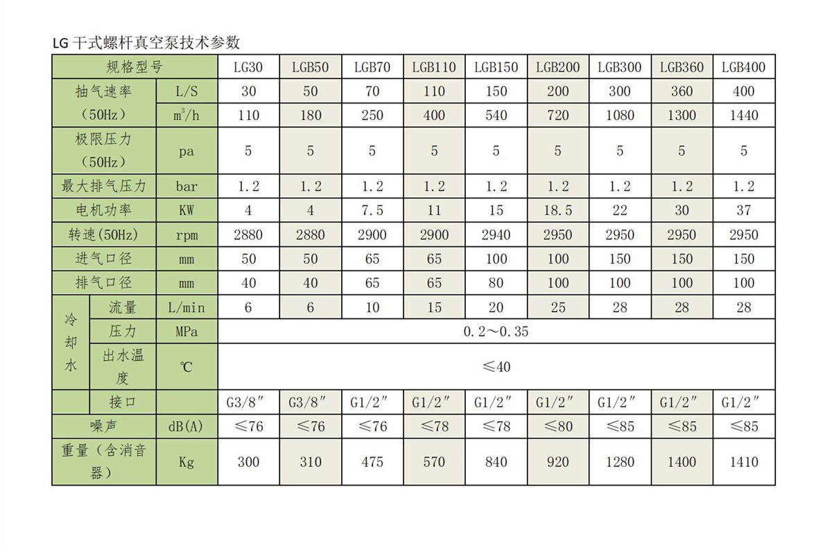 LGB干式螺桿真空泵技術(shù)參數(shù)